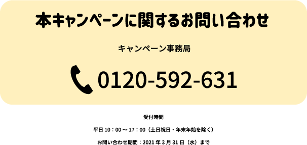 受付時間: 10:00~17:00(土・日・祝日および年末年始を除く)